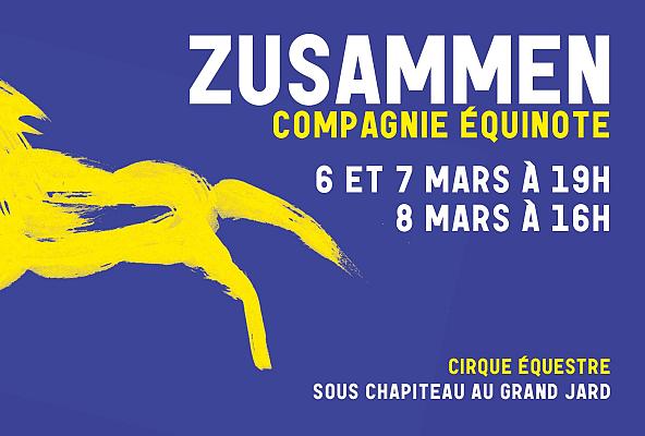 Découvrez La compagnie Équinote et son spectacle équestre Zusammen lors de 3 représentations sous chapiteau au Grand Gard de Châlons près du kiosque ! Dans cette nouvelle création, la compagnie mêle cirque et théâtre équestre en tentant de ...
