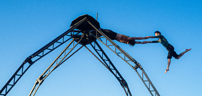 Voltigeuse en cadre aérien elle a découvert sa discipline de prédilection en école préparatoire à Chambéry en 2013. Originaire du sud de la France, elle part donc étudier le cirque en Savoie avant de s’envoler pour le Québec. Opération à l’épaule, galère de duo, elle décide d’arrêter l’école et pousse jusqu’au Pérou où elle se met un peu au cadre coréen. C’est finalement lors d’un “bref” passage en France que Lili la contacte en 2018. Retour au pays, reprise du cadre aérien et trois mois de cirque traditionnel chez Pinder ont été le lancement d’un duo.